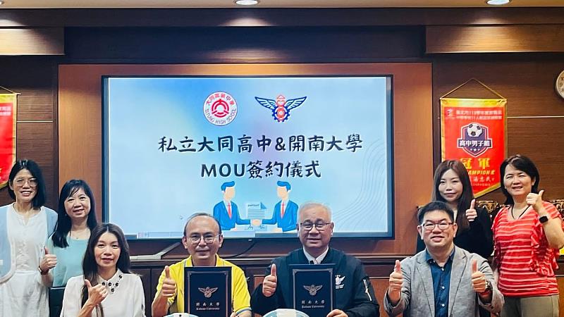 簽約儀式由大同高中校長孔令明主持,家長會及校方多位代表出席;開南大學則由董事會主任秘書兼副校長陳文甲代表董事長顏志光與校長郭鐘達出席,並由法律學院院長游明得共同見證,展現雙方深化合作與培育國際人才的決心。