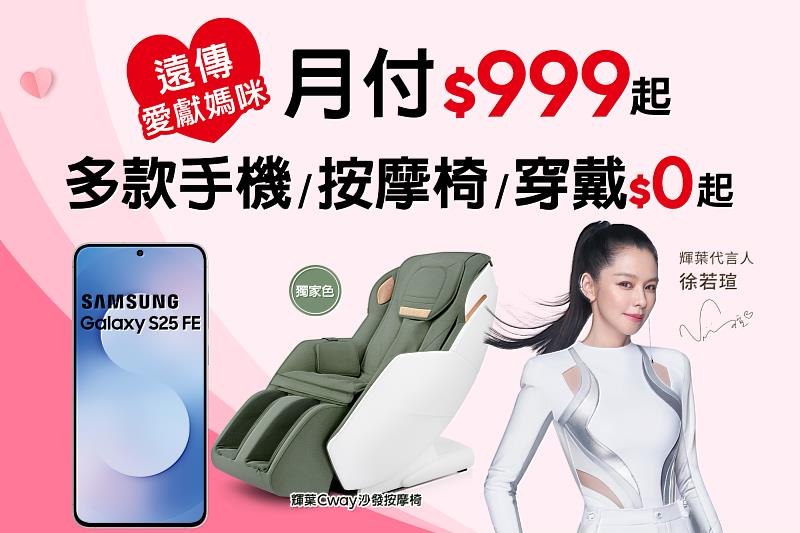(中央社訊息服務20260415 16:39:47)迎接母親節,遠傳限時推出「愛獻媽咪」活動,即日起至5月31日止,搭配指定方案月付999元起,就能把媽媽「想很久卻捨不得買」的夢幻好禮直接0元帶回家。像是遠傳獨家色輝葉Cway沙發按摩椅,讓媽媽在家就能感受媲美真人手感的紓壓時光;還有Dyson鉛筆吸塵器、Dyson涼暖智能空氣清淨機、小米75吋智慧顯示器及多款智慧手錶等多樣選擇。