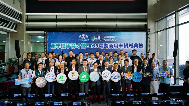 (中央社訊息服務20260417 16:53:40)崑山科技大學於今(17)日盛大舉辦「中華汽車 ET35 電動商用車捐贈典禮」暨「崑山科大自行開發各式電動載具成果展」,校方與中華汽車同步簽署產學合作備忘錄(MOU),中華汽車並捐贈全台首部量產 3.5 噸電動商用車 ET35 給予校方,本次活動由教育部促進產學連結合作育才平臺計畫辦公室(台科執辦)協助辦理。此活動不僅象徵企業對技職教育的高度支持,更代表雙方將共同投入高階技術人才培育,為臺灣綠色運輸轉型寫下新篇章。