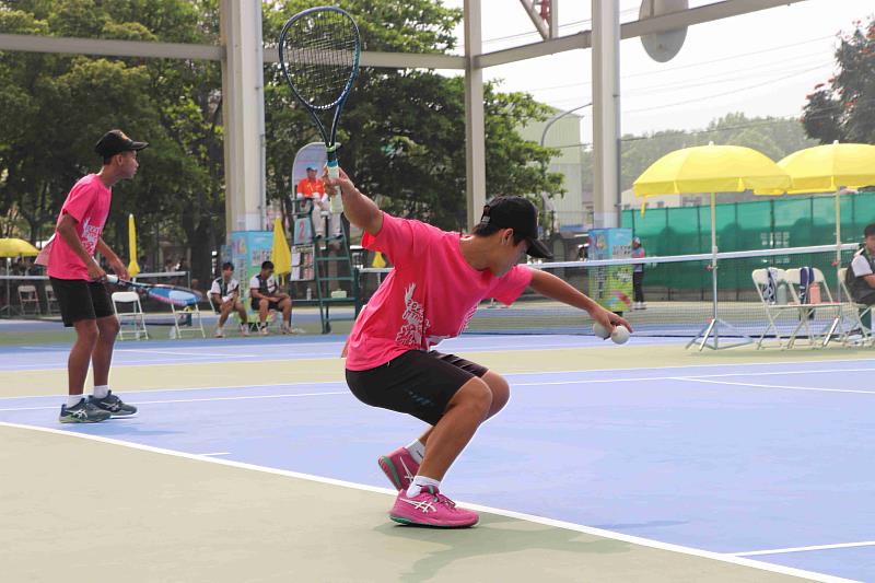 (中央社訊息服務20260418 09:53:05)115年全國中等學校運動會軟式網球賽事火力全開,場邊加油聲此起彼落,氣氛沸騰,嘉義縣永慶高中在葉佳霖教練帶領下強勢出擊,高翊哲與林翊弘於16強晉級8強關鍵戰上演高速對決,底線抽擊與網前截擊來回拉鋸,節奏緊湊、火花四射,關鍵分更是拚勁十足,最終成功突破重圍挺進8強,全場歡呼,展現地主隊不容忽視的競爭氣勢。