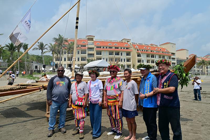 臺東縣政府推動、全國首艘結合查莫洛、阿美與達悟族等,三方智慧打造跨島嶼南島船新船,今(18)日在杉原灣海洋學習基地舉行新船下水儀式,象徵「移動的文化」正式啟航,讓海洋成為文化連結場域,臺東縣長饒慶鈴宣布,舟船命名為「Mata No Riyal海洋之眼」,代表集合眾人之力打造一艘「跨越語言、文化與海洋」南島之舟,5月從杉原灣出發,沿臺東海岸線航行,為2026年臺東博覽會報佳音。