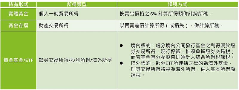 2. 多元資產配置稅務分類:以「黃金投資」為例