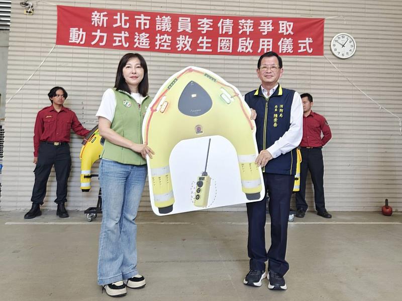 (中央社訊息服務20260420 11:26:58)新北市政府消防局於115年4月20日(星期一)上午10時整,於消防局辦理動力式遙控救生圈啟用儀式。此次由新北市議會李倩萍議員積極爭取救災裝備經費,由消防局採購動力式遙控救生圈2組,總經費約新臺幣76餘萬元,並統籌配發予新店及八里分隊使用,將有效提升第一線水域救援能量,守護市民生命安全。