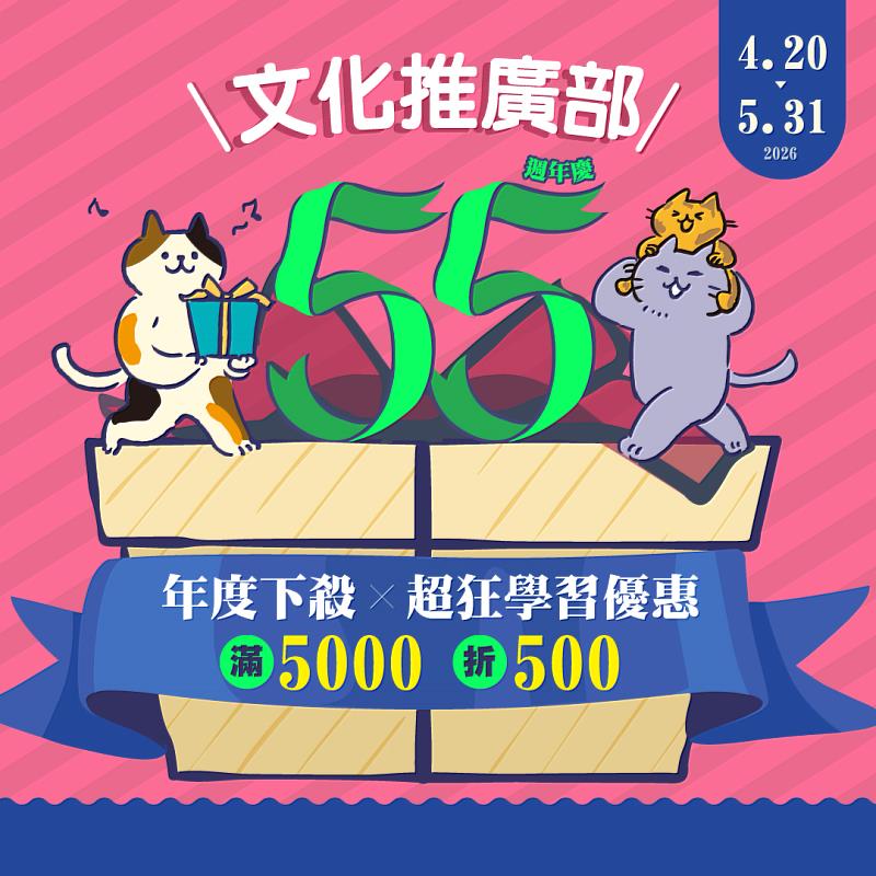 文化推廣部「55週年慶」活動,即日起至5月31日止。詳細辦法,請見活動網址:https://www.sce.pccu.edu.tw/event/anniversary2026