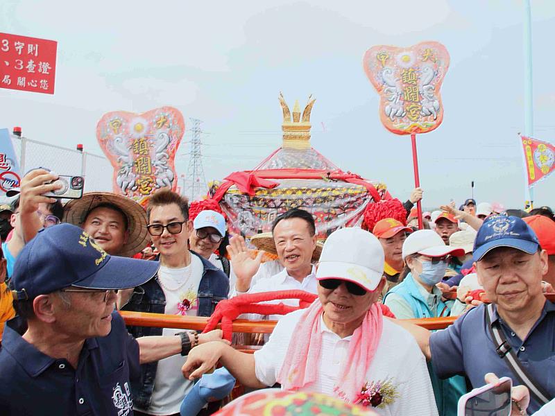 顏清標指出,要感謝的話不是三兩句就說得完,千言萬語道不盡,非常感謝翁縣長將台積電帶來這裡,尤其在媽祖的保佑之下,大家都變得越來越好,沿路善食不怕大家吃,回鑾時也歡迎大家到大甲用餐,台灣這塊寶島大家一定要和善,也希望世界更和平,媽祖娘娘一定會帶來風調雨順跟平安。