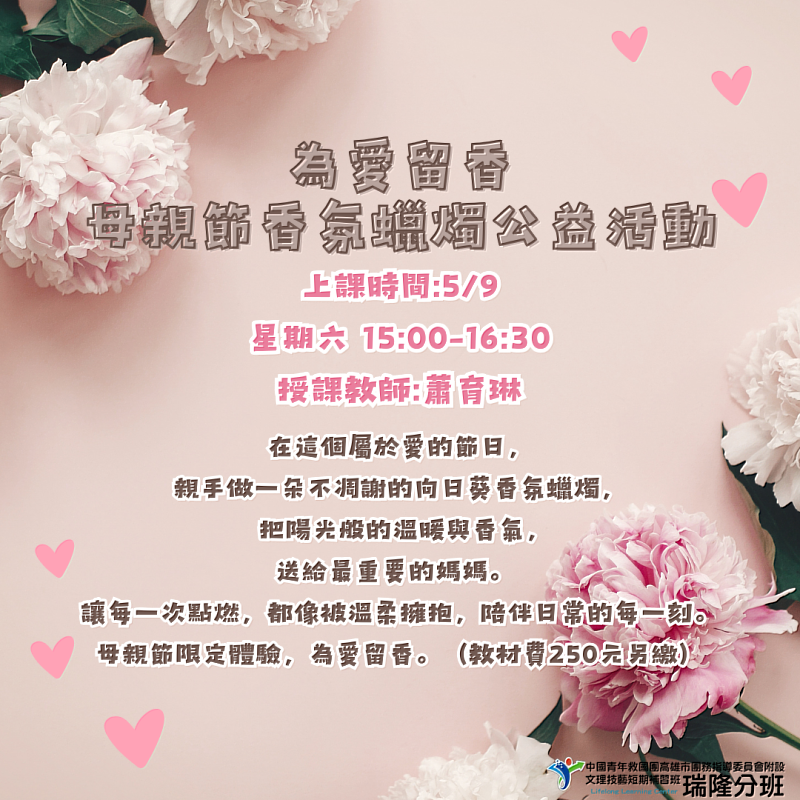 高雄市救國團瑞隆分班「母親節公益活動-為愛留香 母親節香氛蠟燭公益活動」