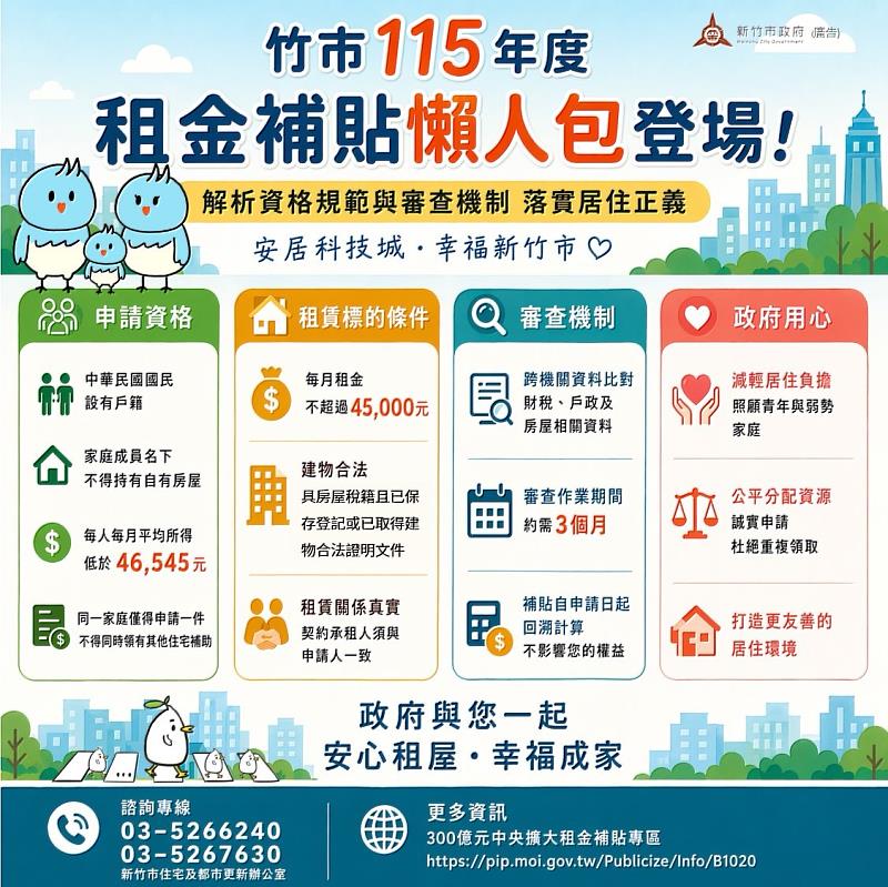 落實居住正義 竹市115年度租金補貼懶人包登場
