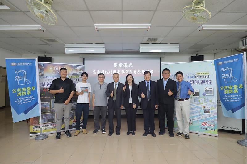 (中央社訊息服務20260424 10:30:53)隨著人工智慧(AI)技術在公共安全領域應用的日益普及,嘉南藥理大學於23日在環境永續大樓隆重舉行與雲義科技股份有限公司合作備忘錄(MOU)簽署暨「UniPicket視衛通AI影像辨識設備」捐贈儀式,由嘉藥副校長劉瑞美主持,宣布雙方未來將針對產業人才培育與智慧防災研究展開深度合作。此次獲贈的先進AI影像辨識系統將直接導入教學現場,全面提升學生的科技防災實力,引領台灣防災技術邁向智慧化轉型。