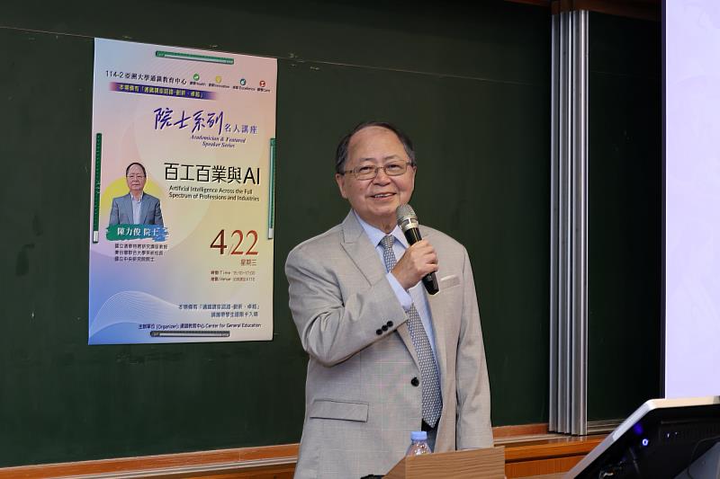 (中央社訊息服務20260425 10:09:43)人工智慧浪潮席捲全球,高等教育如何因應快速變遷的科技環境,成為各界關注焦點。亞洲大學22日舉辦專題講座,邀請中央研究院院士、國立清華大學材料科學工程學系教授陳力俊,以「AI與百工百業」為題,深入剖析人工智慧的技術演進與未來發展。陳力俊指出,AI已逐步成為如同水電與網際網路般的「通用技術」,未來人類將高度仰賴其服務;面對其帶來的結構性衝擊,培養自主思辨能力將是關鍵。