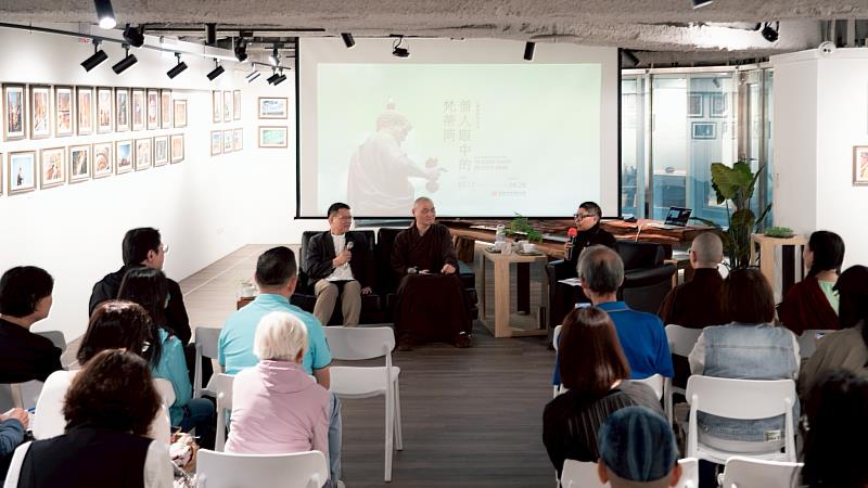 在場的世界宗教博物館發展基金會執行長室主任寶屹法師也加入分享行列,3人在主持人引導下,回顧梵蒂岡之行的點滴,並提及不同宗教之間的共通點是愛與慈悲,正呼應博物館金色大廳兩根金柱上的箴言:「愛是我們共同的真理,和平是我們永恆的渴望。」