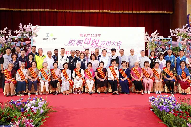 (中央社訊息服務20260427 11:00:46)5月母親節將至,嘉義市政府趕在母親節前夕舉行「115年模範母親表揚大會」,嘉義市長黃敏惠出席典禮,並表揚16位模範母親、6位慈馨媽媽。黃敏惠市長並肯定每位模範母親都是「勇媽」,以勇士的精神面對挑戰、扶持家庭。