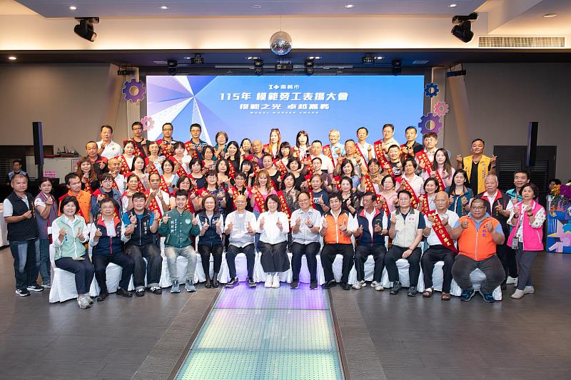 (中央社訊息服務20260427 16:28:47)嘉義市政府於今(27)日舉辦「115年模範勞工表揚大會暨勞動節系列活動」記者會,嘉義市長黃敏惠出席頒獎,向來自各行各業的53位模範勞工致上最高敬意與祝福。感謝勞工朋友們堅守崗位及無私奉獻,不僅是職場的標竿,也是嘉義市的繁榮奠定基石,更是推動城市前進的動力。