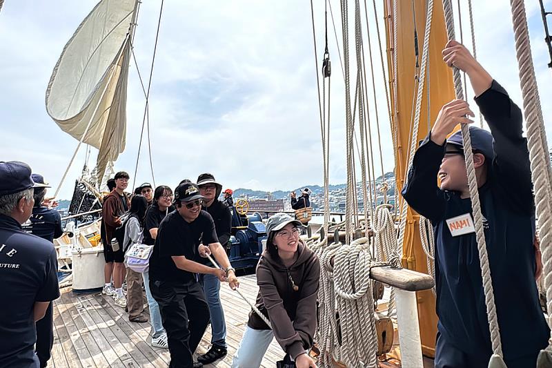 本次參訪由日本笹川平和財團海洋政策研究所(OPRI)資深主任Sachiko Oguma博士促成。OPRI與「みらいへ」長期合作推動青年海洋教育,本次透過曾任艦長之Tomohisa Ohara先生協調,由專業船員引導海大師生與高中種子教師深入船艙、桅杆、海圖室及操舵室,近距離觀察一艘真實運作中之練習帆船及其海上生活。該船為日本目前唯一面向一般大眾運航之民間練習帆船,其2026年黃金週長期航海自九州小倉啟程,基隆為其航程中極具代表性的跨國停靠點,隨後將續航回母港神戶,全程約1個月。