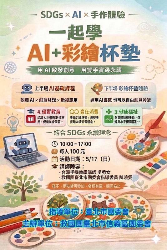 救國團臺北市信義區團委會邀您體驗「一起學AI+彩繪杯墊」活動