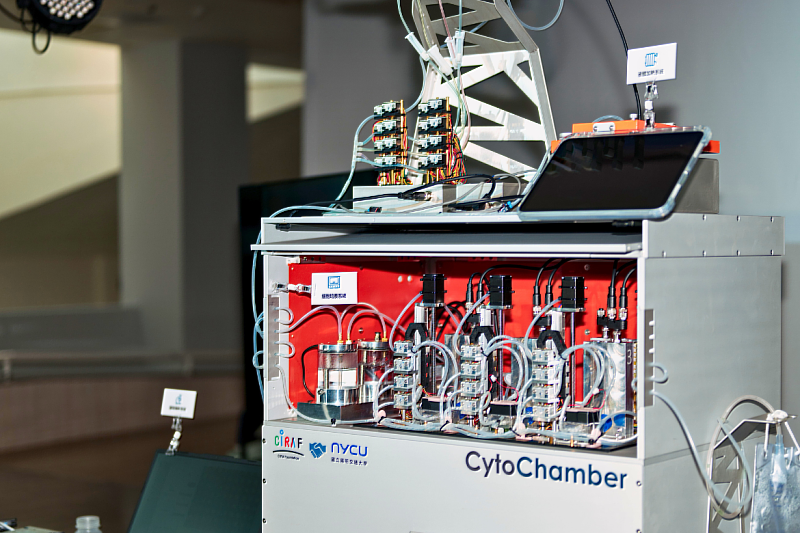 NYCU and the National Center for Instrumentation Research, under the National Applied Research Laboratories, jointly developed the Cyto Chamber (Pioneer One). The system fully automates stem cell cultivation and passaging, integrating temperature regulation, carbon dioxide control, culture medium supply and removal, and continuous microscopic imaging into a single platform.