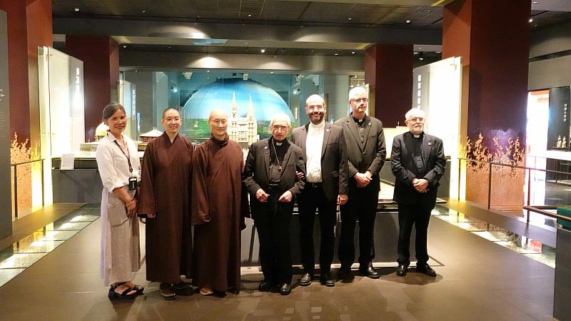 Venerable Master Xian Yue, CEO of MWR, welcomed the guests and guided them through the Pilgrims’ Way into the Great Hall of World Religions. The delegation expressed admiration for the museum’s detailed architectural models of major sacred sites. They also visited the exhibition “The Vatican Through a Monk’s Eyes,” currently on view in the “Nature In Me” Gallery.