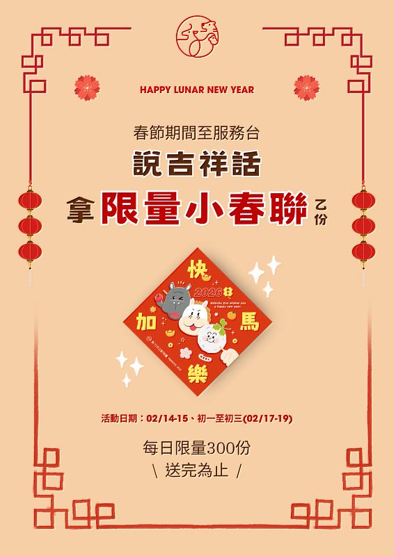馬到福到迎新歲 竹市動物園春節期間限量送「快樂加馬」小春聯