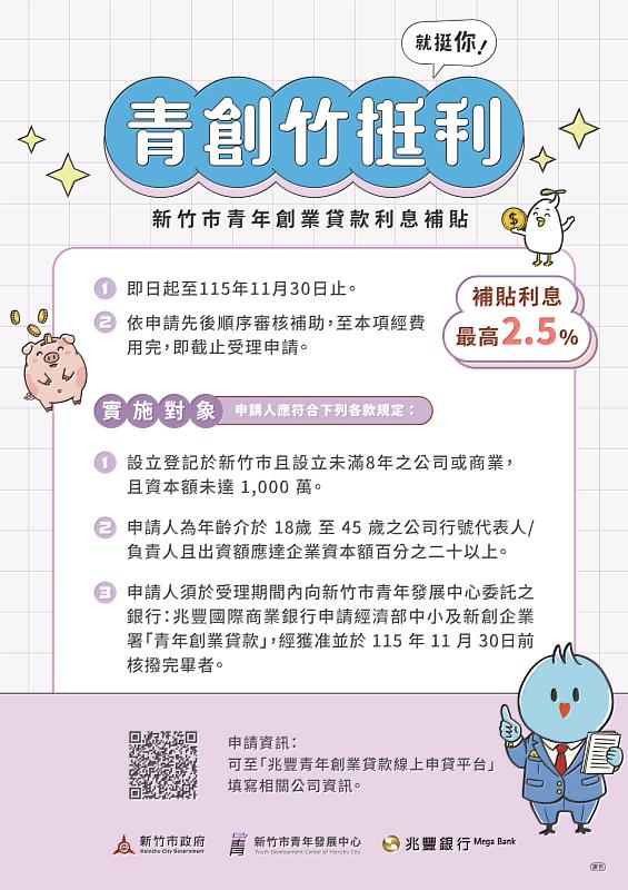 青年敢拚、竹市敢挺!「竹挺利」青年創業貸款利息補貼續辦力挺創業青年