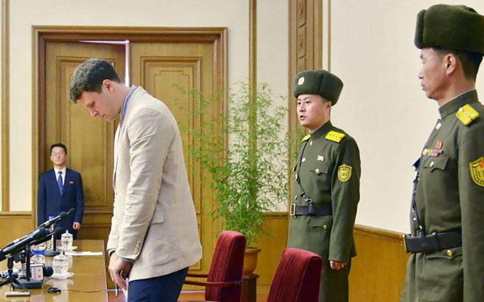 2016年1月:美國大學生溫畢爾被控竊取政治文宣海報在北韓被捕,之後被判15年勞改
