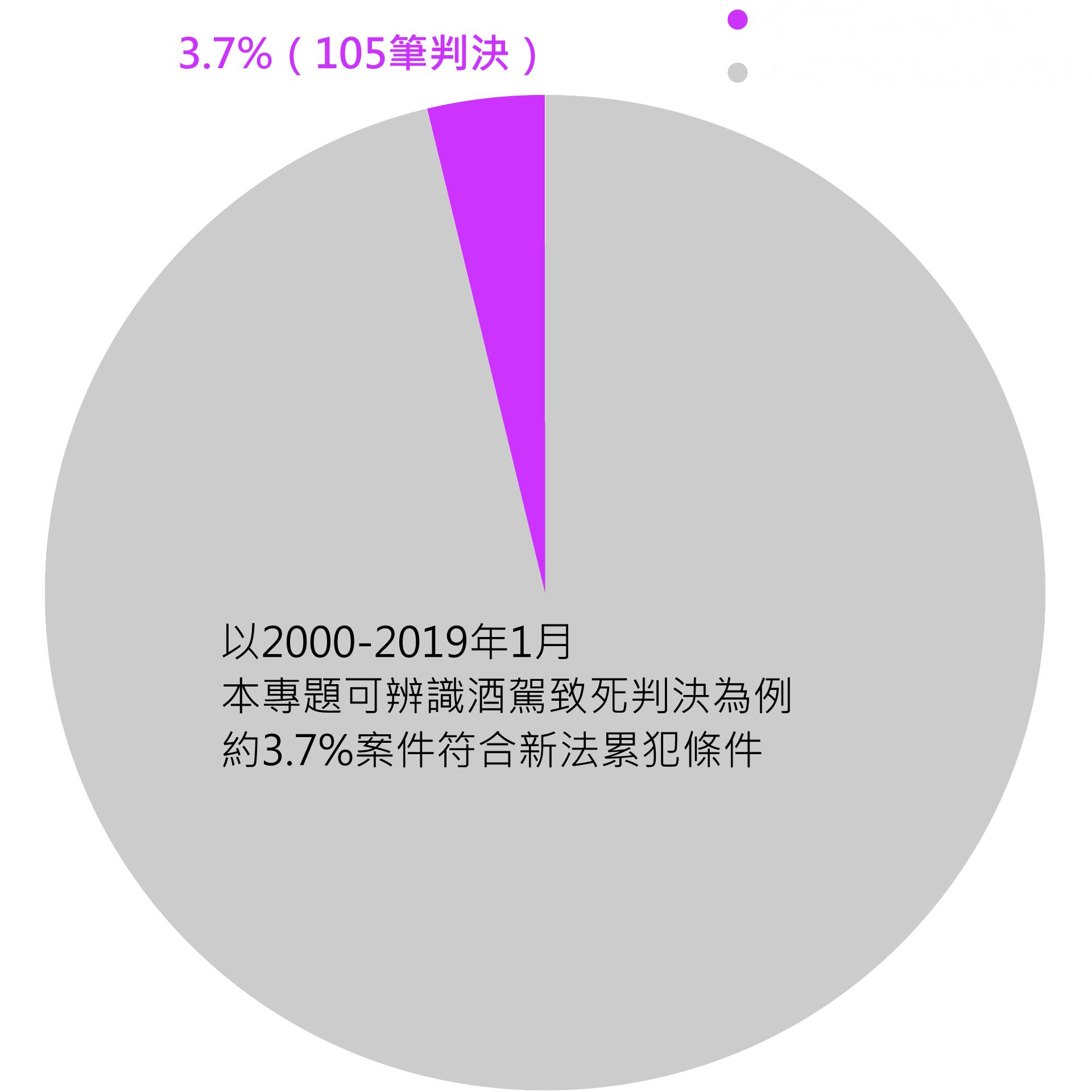 105筆符合此次修法條件的案件,篩選過程是先以2000至2019年1月酒駕致死判決為基礎,篩出全文含「累犯」二字的判決共339筆,再進一步人工判斷。