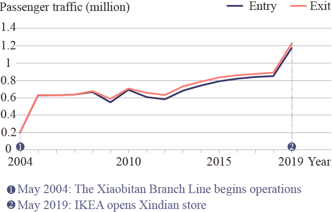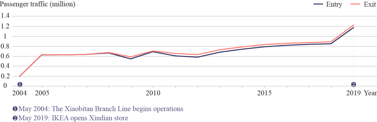 Before 2018, the average number of passengers entering and exiting the station per day had been below 5,000, and had always been in the bottom three stations in terms of passenger traffic.