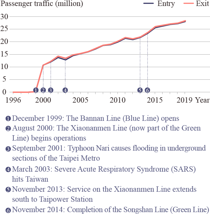 Another survey by the department found that in 2018, the Taipei Metro was the most frequently used form of public transportation in the city, and public satisfaction with the system was 99.57 percent.