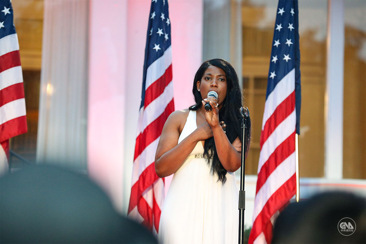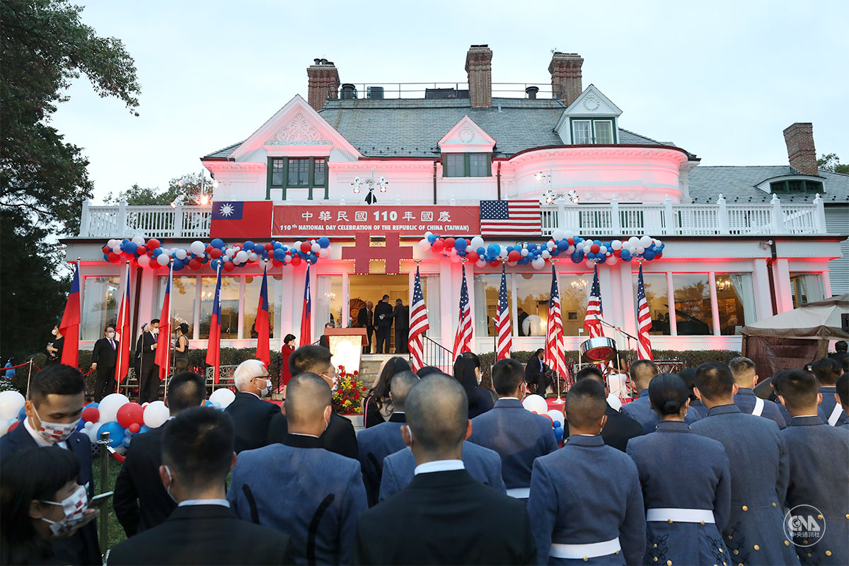 酒會主舞台設在後院,播放中華民國與美國國歌,駐美代表蕭美琴與美國在台協會主席莫健分別致詞,邀請貴賓舉杯慶祝。