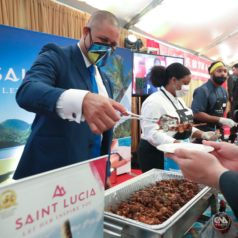 駐美代表處以「島嶼節慶」為主題邀請友邦聖露西亞名廚提供傳統酒會餐點,並邀請露國鋼鼓演奏家表演。