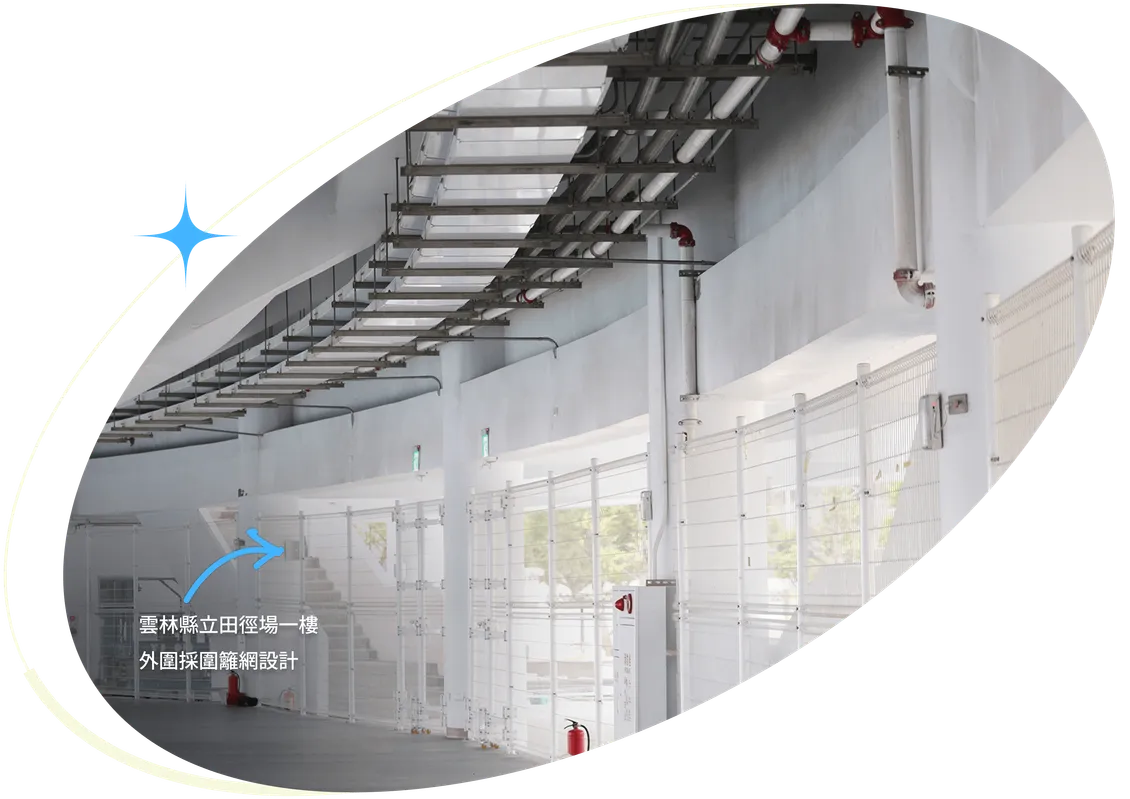 雲林縣立田徑場的一樓外圍採圍籬網設計