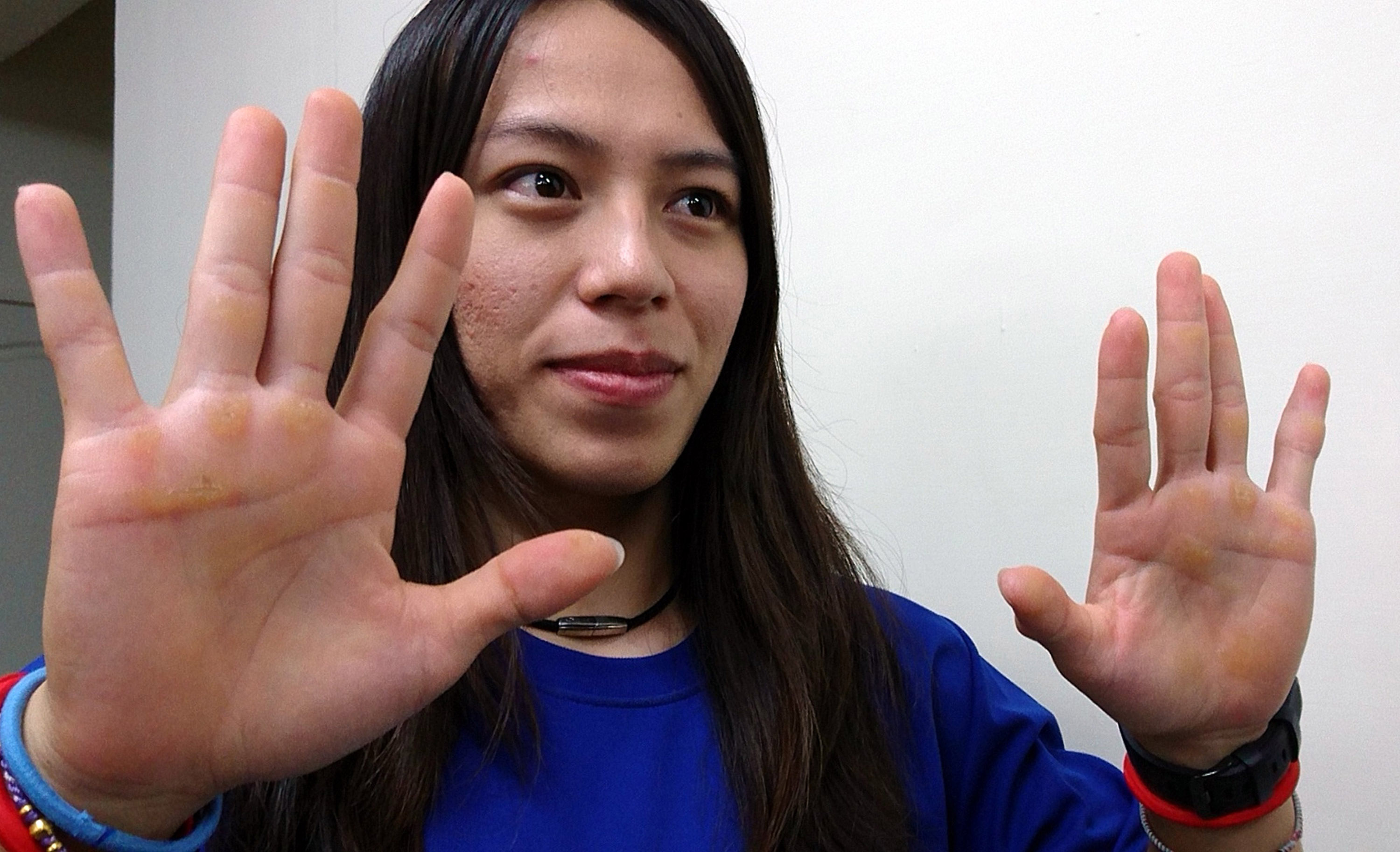 小女生練舉重吃足苦頭,郭婞淳原本想放棄,但為了自己前途,即使練到手掌皮開肉綻,她也用繃帶綁著繼續練,未曾喊停。