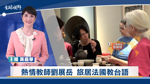 歡迎收看中央社全球視野,我是黃嘉華。[熱情教師劉展岳 旅居法國教台語]、[泰星代言台灣觀光 最愛珍奶鹽酥雞]。感謝您的收看,我們在華視頻道和中央社網站都有播出,我是黃嘉華,我們再會。