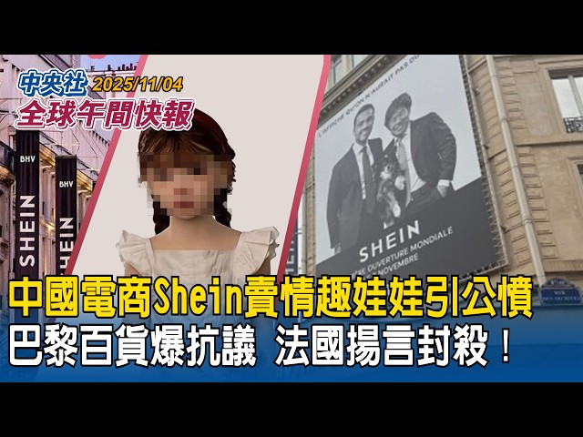 中國電商Shein賣情趣娃娃引公憤!巴黎百貨爆抗議!法國揚言封殺|川習會未提台灣!美學者曝內幕:川普透露不想讓習近平「如願以償」|2025/11/04 中央社全球午間快報