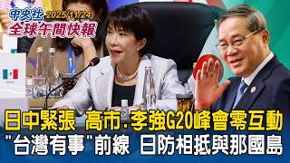 日中緊張!高市早苗、李強G20峰會零互動 「台灣有事」前線!日防相視察與那國島曝部署飛彈|美稱俄烏和平計畫有「重大進展」美議員爆「俄國願望清單」盧比歐:可調整|2025/11/24 中央社全球午間快報