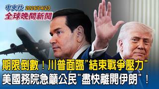局勢升級?美國務院急籲公民「快離開伊朗」!|60天期限倒數!川普面臨「結束戰爭壓力」|2026/04/23 中央社全球晚間新聞