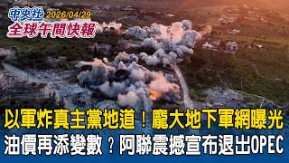 巨大煙柱猛竄!以軍炸毀真主黨地道!龐大地下軍網密錄畫面曝光|全球油價再添變數?阿聯震撼宣布「退出OPEC」|2026/04/29 中央社全球午間快報