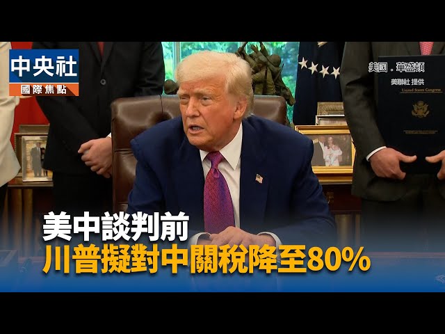 美中兩國本周末將在瑞士進行首次貿易談判,美國總統川普昨晚發文,提出將對中關稅調降至80%的構想,以緩和貿易戰。