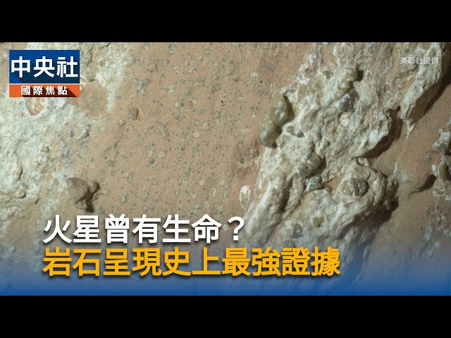 美國太空總署科學家近日宣布,在火星表面發現的特殊岩石,為火星可能存有古老生命,提供了有力的證據。科學家認為這塊岩石上的斑點特徵,可能是某種微生物代謝活動後的排泄物。雖然這些特徵也可能經由非生物方式產生,未能下定論,但科學家仍表示這樣的發現還是令人振奮。