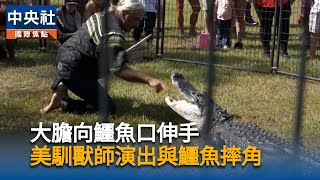 大膽向鱷魚口伸手 美馴獸師演出與「鱷魚摔角