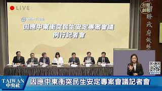 行政院因應中東衝突民生安定專案會議例行記者會 # 中央社直播LIVE